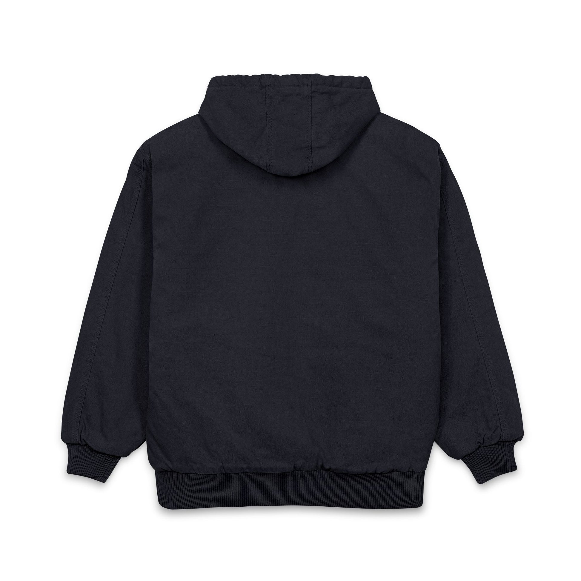 A rugged, work-ready hooded jacket built from heavyweight enzyme-washed duck cloth that softens with wear. The zip-front design and drawstring hood with antique brass eyelets give it a classic workwear silhouette, while rib-knit cuffs and waistband hold warmth close and keep the fit tidy during long days on the job. Ample storage includes front pouch pockets, an interior zip pocket for valuables, and a decoration access pocket for embroidery. Durable 12 oz fabric stands up to daily wear but breaks in comfortably, making this jacket feel like one you’ve relied on for seasons yet ready for many more.